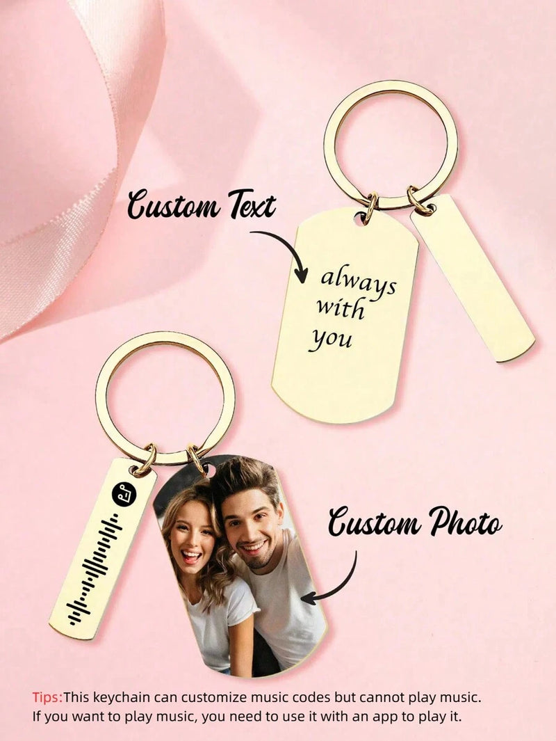 Celebrate love with this Custom Couple Photo Keychain, personalized with a photo, date tag, and engraved music code. Made from durable stainless steel, it pairs with an app to scan and play a custom song, making it a unique keepsake. Perfect as an anniversary, birthday, or Valentine’s Day gift for him, her, or couples who love meaningful accessories.