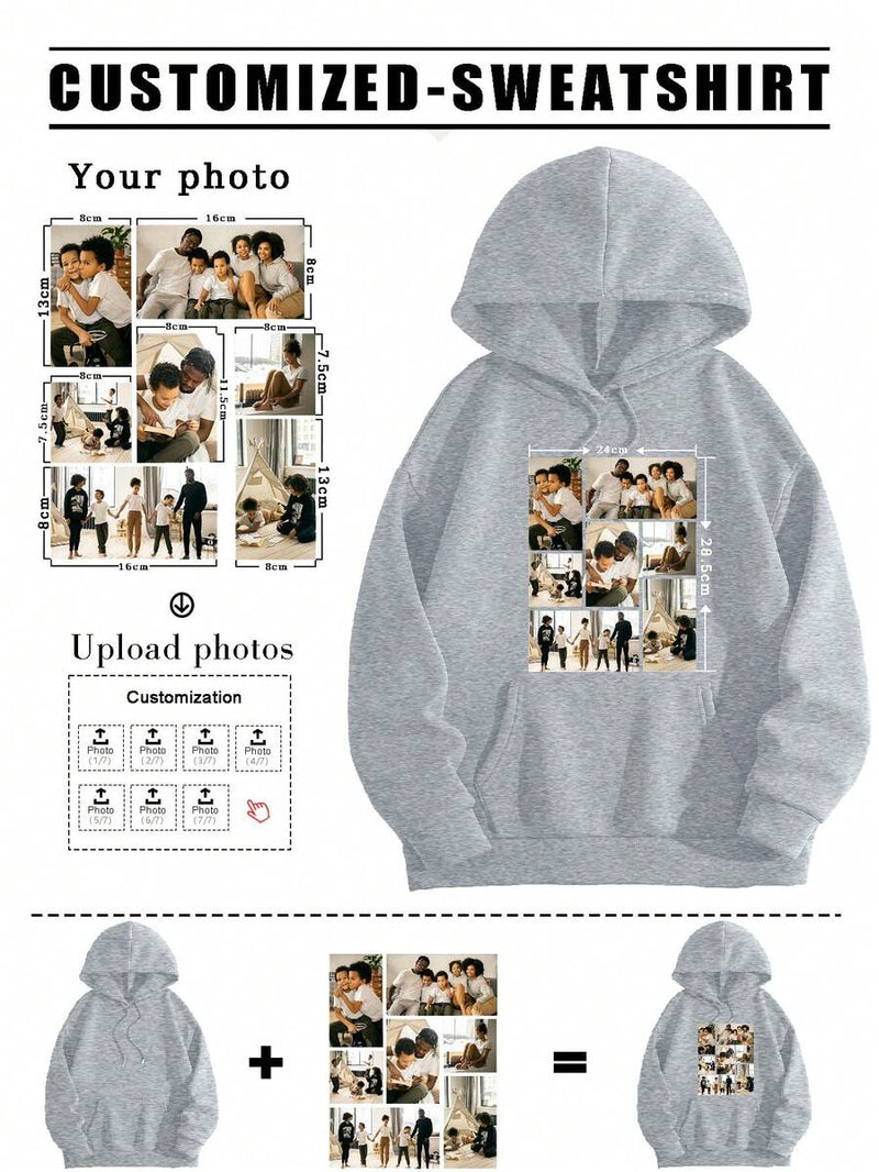 Create a personalised women’s hoodie with custom photos, or designs for a unique and stylish look. Perfect for family gatherings, parties, couple photos, or anniversary gifts. Comfortable, durable, and ideal for autumn and winter wear with a modern, hipster vibe.